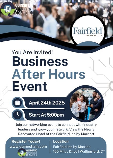 Business After Hours - 4/24/25 Quinnipiac Chamber of Commerce Share: facebook-f icon linkedin-in icon Twitter icon pinterest-p icon envelope icon Click to Register